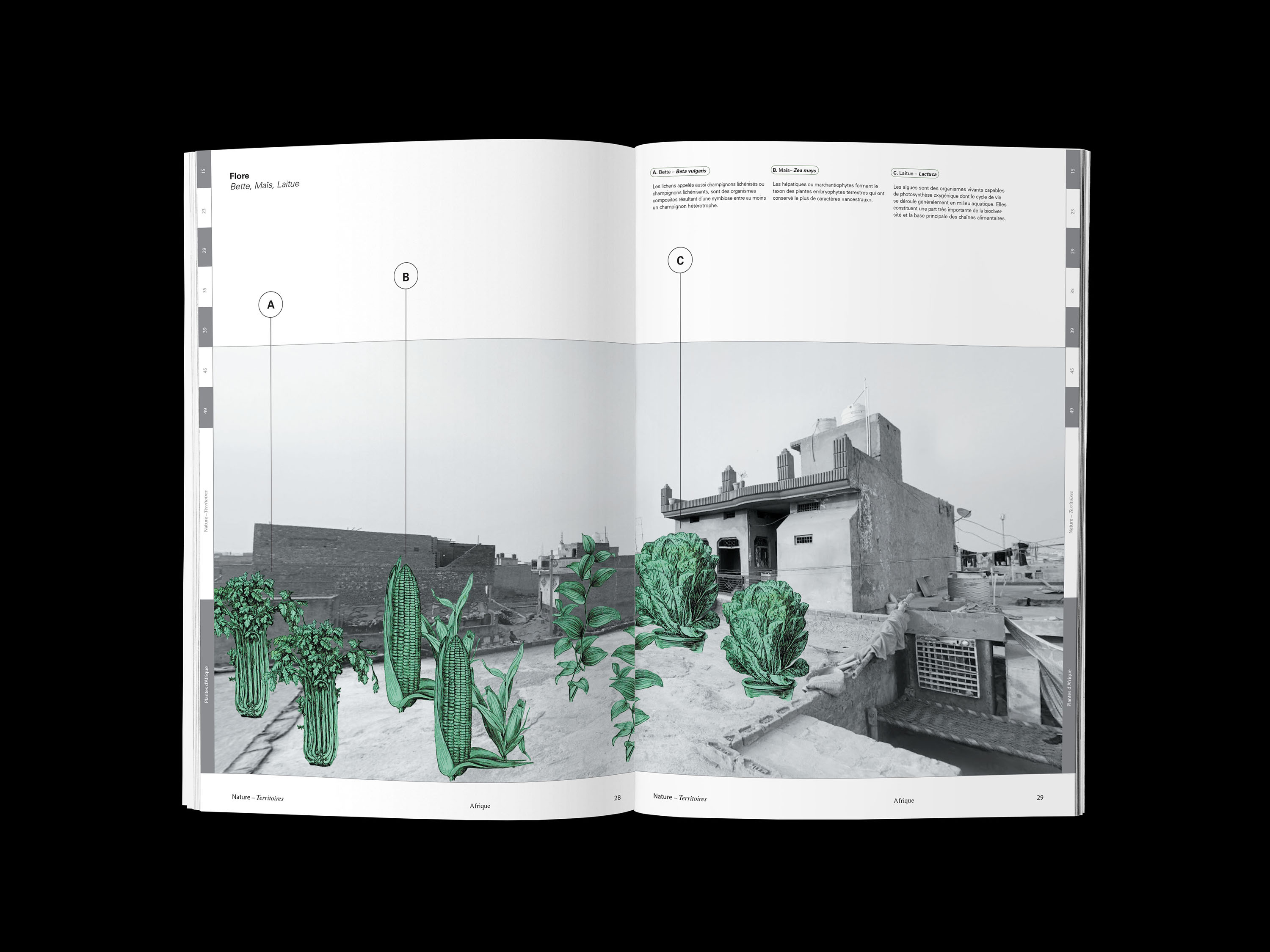 La végétation et son rôle dans notre quotidien sont les thèmes abordés dans mon ouvrage. J’ai ancré mon travail de diplôme autour d’éléments historiques (planches, estampes), de représentations visuelles et d’explications scientifiques. Mes recherches m’ont fait prendre conscience que la végétation est utilisée aussi bien dans nos médicaments que dans notre manière de vivre.