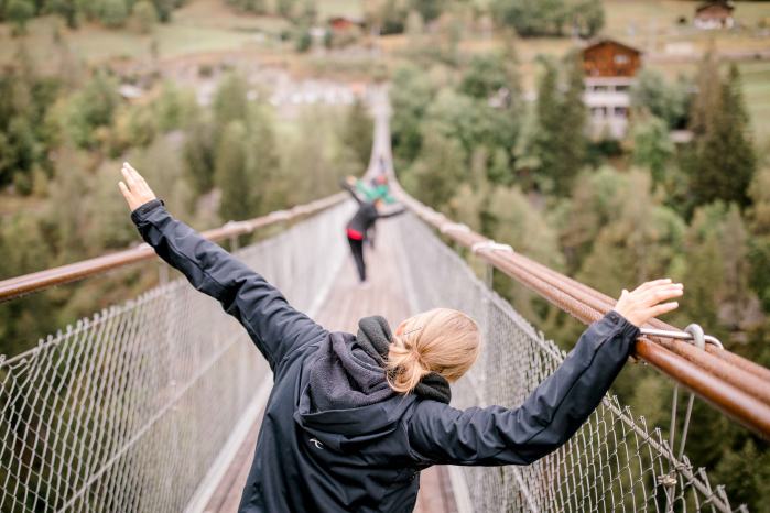 13:00 Rdv en contrebas de la gare Fürgangen-Talstation: Performance digne de Trisha Brown sur le pont suspendu de Mühlebach puis pause repas en attendant le Matterhorn Gotthard Bahn